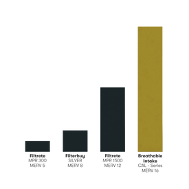 Because it is rated at about half the pressure drop of most traditional filters, the Breathable Intake filter allows your central heating or cooling system to operate more efficiently while keeping the air cleaner.