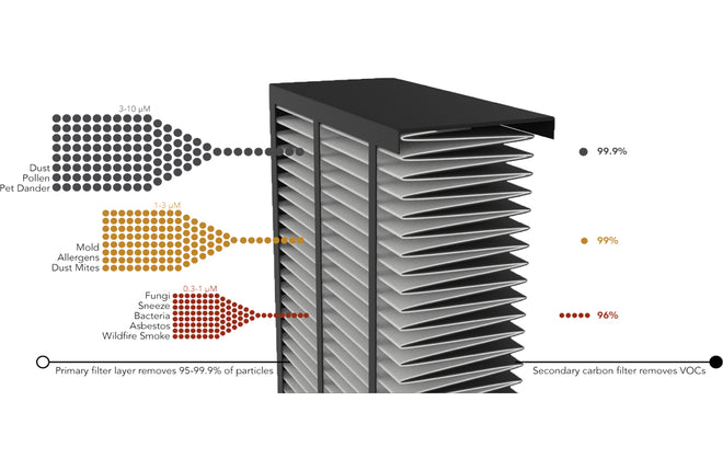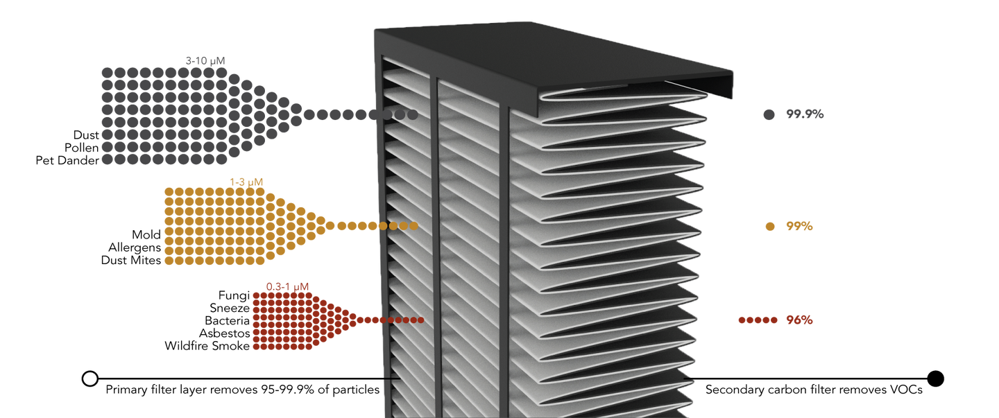 A Breathable Intake filters 0.3 micrometer sized particles which are the biggest concern during a wildfire at 2-20 times the efficiency of the most commonly used filters.
