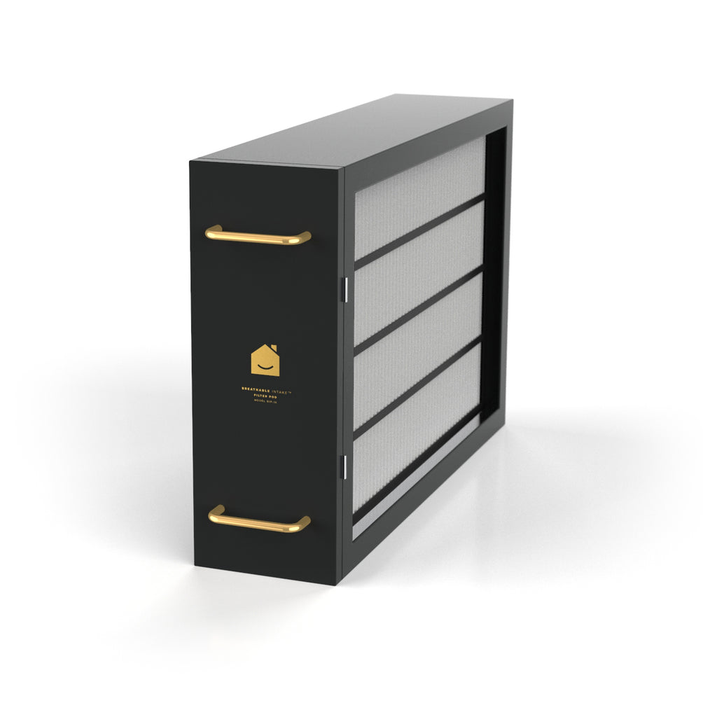 When combined with our air filter, the Breathable Intake Filter Pod is the central air cleaner with the highest air filtration efficiency and a low-to-none particle bypass for central residential heating and air conditioning systems. Rated at MERV-16, which is currently the closest rating to true-HEPA, the Filter Pod outperforms best in class 1-5 inch air cleaners in filtering microscopic contaminants (more than 95% efficient @ 0.3 microns), at almost half the pressure drop the 1-inch 3M Filtrete line.