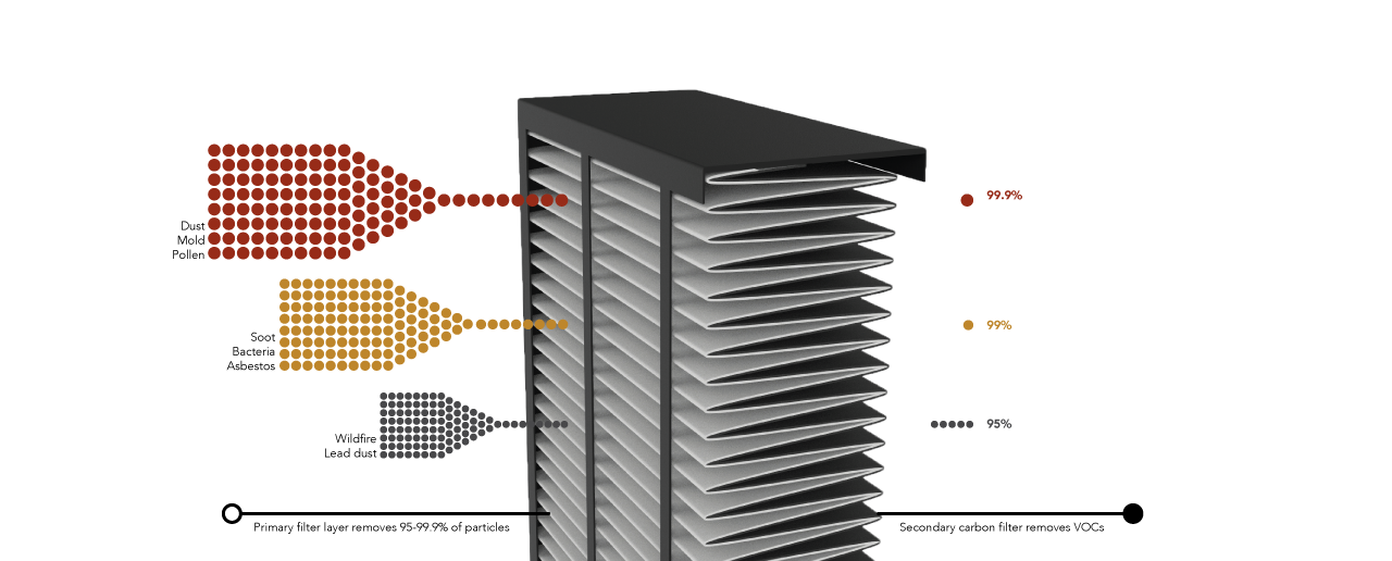 A Breathable Intake filters 0.3 micrometer sized particles which are the biggest concern during a wildfire at 2-20 times the efficiency of the most commonly used filters.